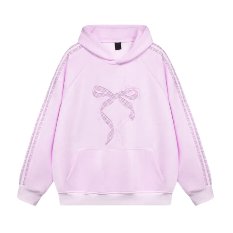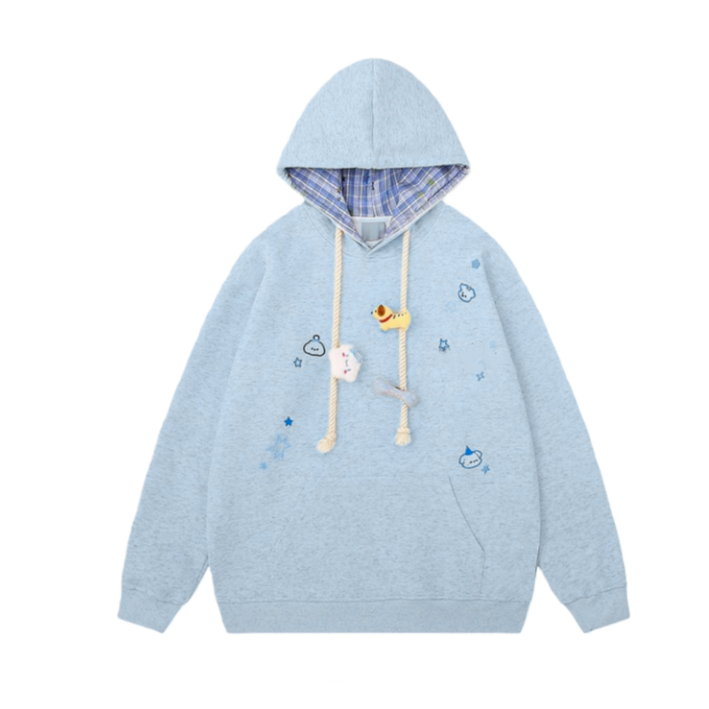 Cartoon Puppy Embroidered Plaid Patchwork Hoodie