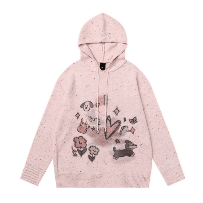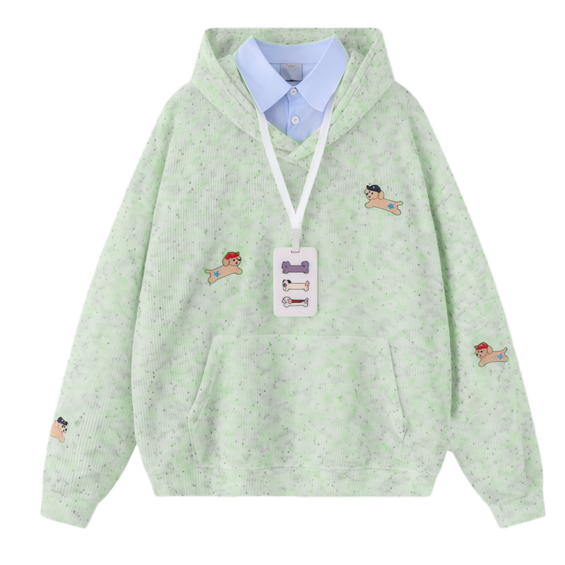Lazy Style Puppy Embroidered Dotted Hoodie